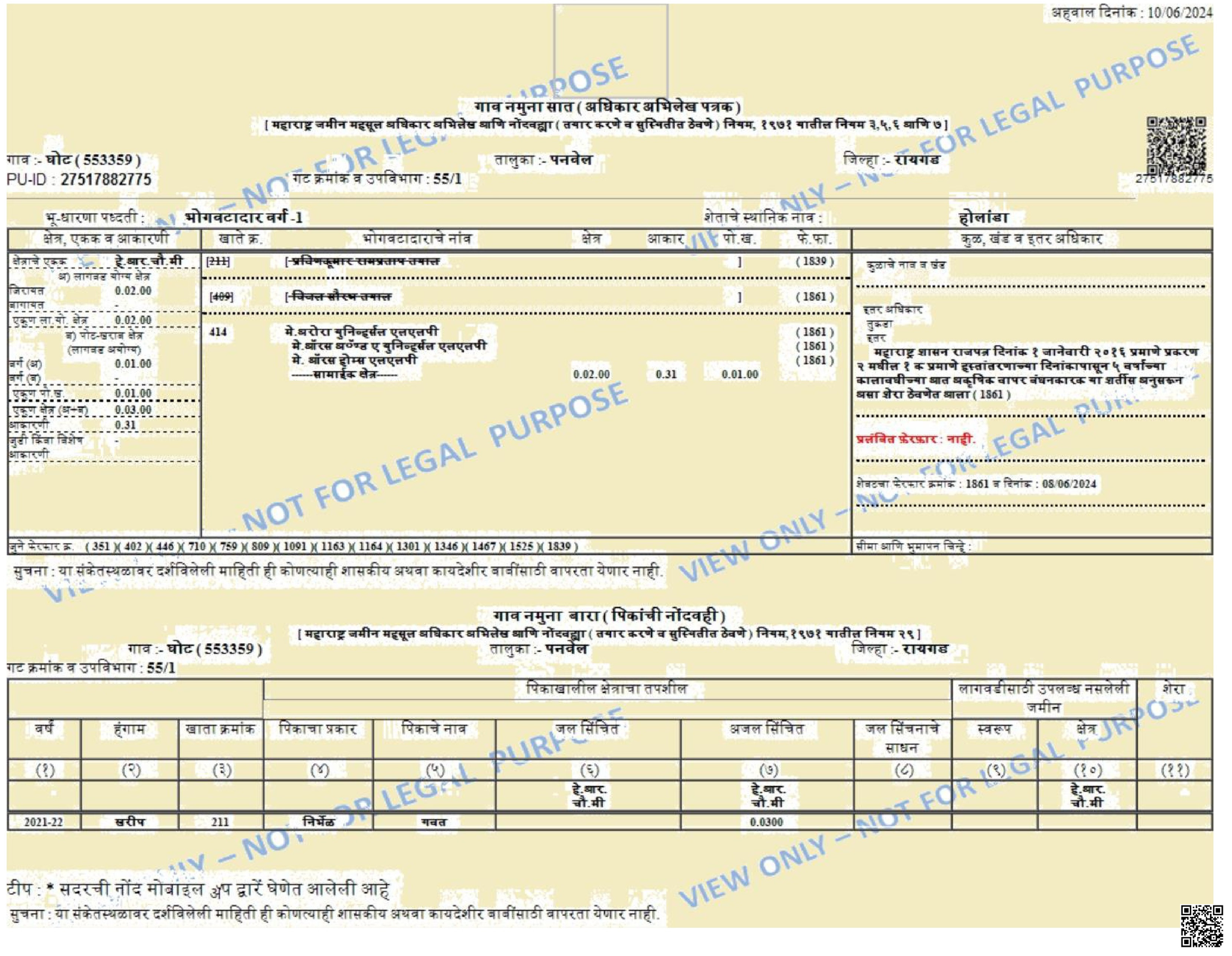 | Rs 45 pks per Guntha Total Rs 17 Cr 73 lks